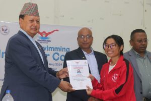 नेपाल पाैडी संघले आज शनिबार सातदोबाटोमा आयाेजना गरेको ५ दिने प्रशिक्षक प्रशिक्षणमा सहभागी प्रशिक्षक खेलाडीहरुलाई प्रमाणपत्र वितरण कार्यक्रममा मन्तव्य राख्नुहुँदै पूर्वमन्त्री बस्नेतले पाैडी जस्तो स्वास्थ्यका लागि अत्यन्तै महत्त्वपूर्ण खेललाई नेपालका ७७ वटै जिल्लामा शाखा विस्तार गरेर खेलकाे विकास र खेलाडीकाे भविष्य उज्ज्वल बनाउनुपर्छ भन्नुभएको हाे ।