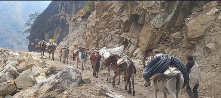 मुगुमकार्मारोङमा अझै पुगेन सडक, घोडा तथा खच्चडको भरमा समाग्री ओसारपसार
