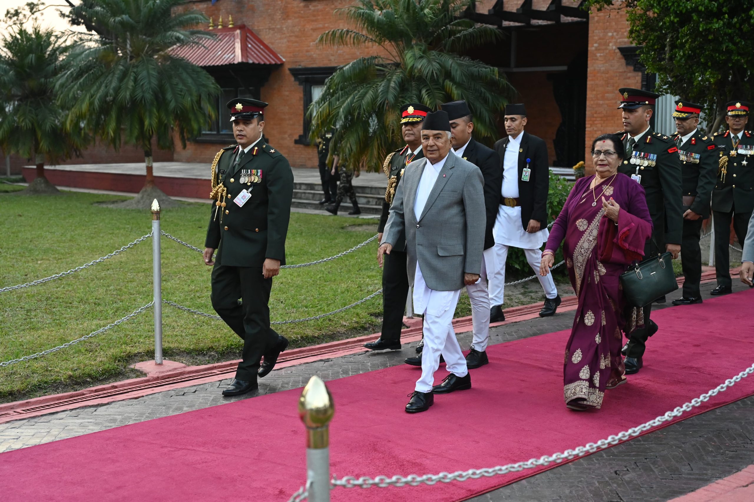 राष्ट्रपति पौडेललाई त्रिभुवन अन्तर्राष्ट्रिय विमानस्थलमा उपराष्ट्रपति रामसहायप्रसाद यादव, प्रधानमन्त्री केपी शर्मा ओली, सभामुख देवराज घिमिरे, उपप्रधानमन्त्री, मन्त्रीहरूसहित सरकारका उच्च पदस्थ अधिकारीहरुले विदाइ गर्नुभयो । सो अवसरमा राष्ट्रपति पौडेलको सम्मानमा नेपाली सेनाले सलामी अर्पण गरेको थियो ।