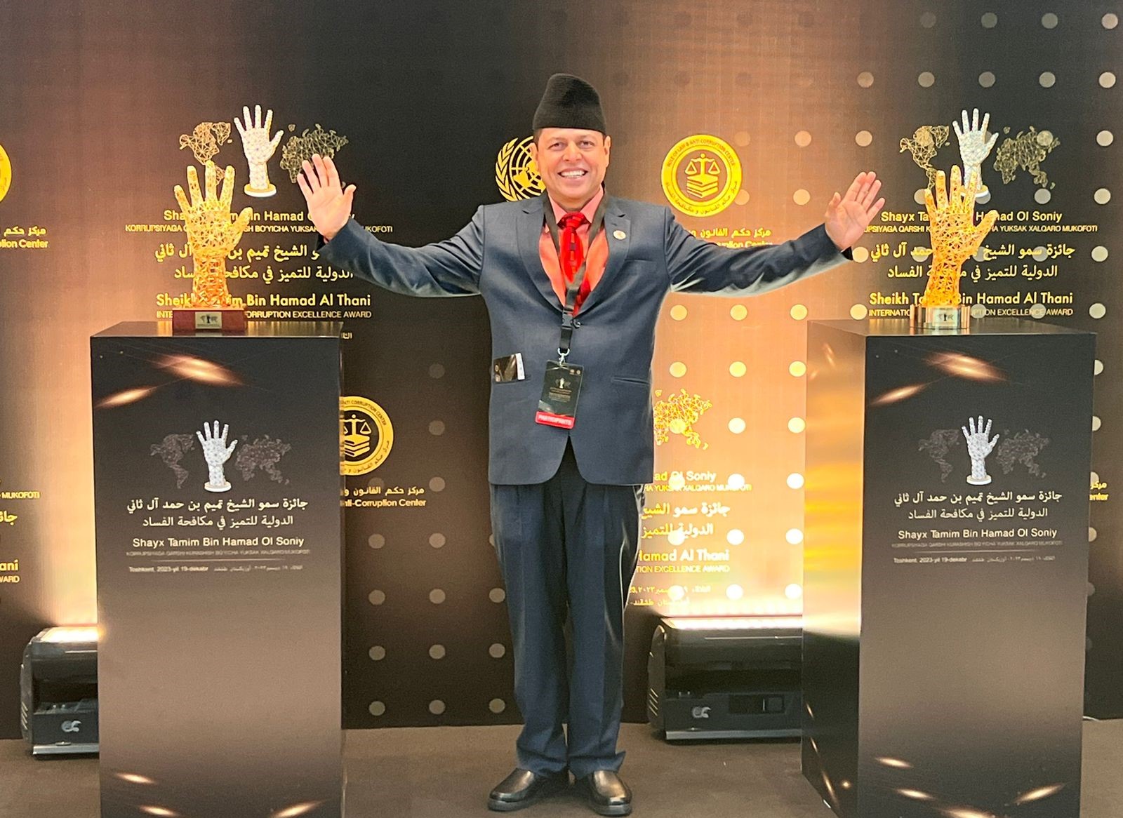 कतारी आमिर अनख तमिम बिन हमाद अल थानीको नाममा स्थापित एन्टी करप्शन अवार्ड मंगलबार उज्बेकस्तानका राष्ट्रपति शवकट मिर्जियोयेवले विश्वका २० जना अभियन्तालाई प्रदान गर्नुभएको हो।
